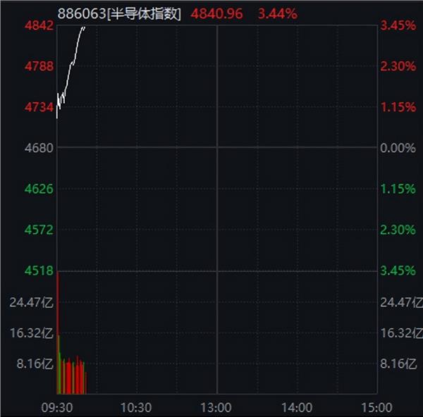 8月30日上午,半导体占领市场C位,半导体指数涨超3%,总市值达到4.14万亿元,助攻科创50大涨。