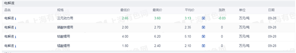 3. 电解液价格