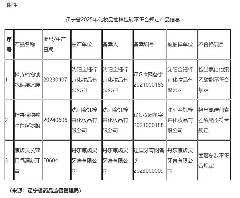 - 2025-12-14辽宁:3批次化妆品不符合规定 涉