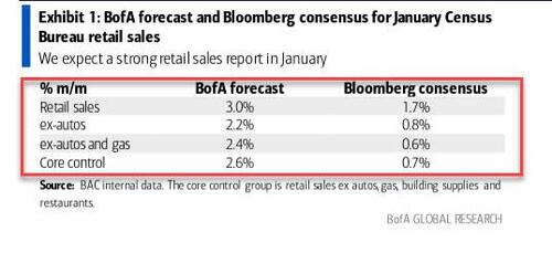 此外,美银预计,1月核心零售销售(不包括汽车、汽油、建筑材料和餐馆)将环比增长2.6% 。