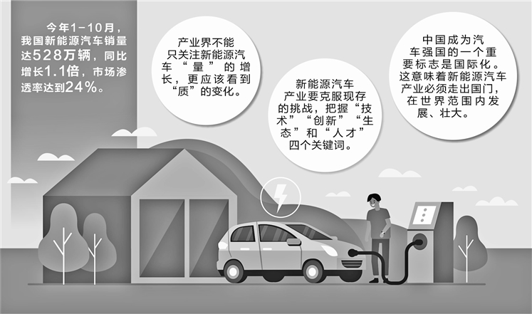 公开数据显示,2012年我国新能源汽车销量约为1.3万辆,2021年这一数字已达352.1万辆,增幅超过270倍,产销量连续7年居全球首位。今年1~10月,我国新能源汽车销量达528万辆,同比增长1.1倍,市场渗透率达到24%。