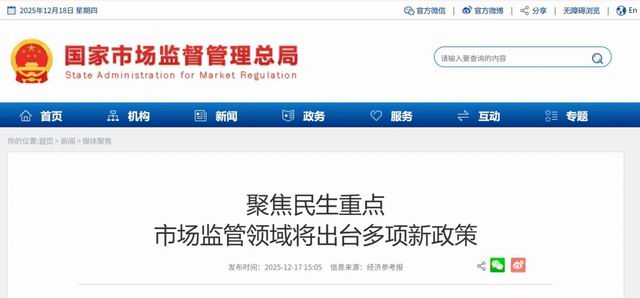 四季度以来,市场监管总局聚焦民生领域,已经打出了监管“组合拳”,重点从两个方向发力:一是完善基础制度,优化发展环境。出台《市场监督管理信用修复管理办法》,构建了更加科学完备的信用修复机制;发布《商业银行收费行为执法指南》,为规范商业银行收费行为提供了精准标尺,降低企业融资成本。
